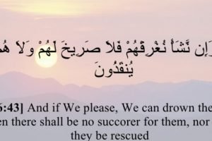 وَإِن نَّشَأْ نُغْرِقْهُمْ فَلَا صَرِيخَ لَهُمْ وَلَا هُمْ يُنقَذُونَ 43. നാമിച്ഛിച്ചിരുന്നുവെങ്കില് നാമവരെ മുക്കിക്കൊല്ലും. അപ്പോഴിവരുടെ നിലവിളി...