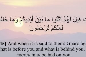 وَإِذَا قِيلَ لَهُمُ اتَّقُوا مَا بَيْنَ أَيْدِيكُمْ وَمَا خَلْفَكُمْ لَعَلَّكُمْ تُرْحَمُونَ 45.’ ‘നിങ്ങള്ക്കുമുന്നില് സംഭവിക്കാനിരിക്കുന്നതും...