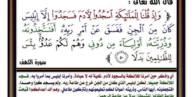 ഇബ്ലീസിന്റെ കഥ ഖുര്ആന് അവതരിപ്പിക്കുന്നത് ഇപ്രകാരമാണ്- ആദമിന് സുജൂദ് ചെയ്യുക എന്ന് നാം മലക്കുകളോട് പറഞ്ഞപ്പോള് ഇബ്ലീസ് ഒഴികെ എല്ലാവരും സുജൂദ് ചെയ്തു. അവന് വിസമ്മതിക്കുകയും അഹങ്കരിക്കുകയുമാണ് ചെയ്തത്-( അല്ബഖറ 34).