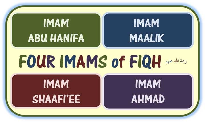 മാലിക് ഇബനി അനസ് (മരണം 179/795), അബുഹനീഫ (മരണം 150/ 767), മുഹമ്മദിബ്‌നു ഇദ്‌രീസ് അശ്ശാഫി (മരണം 205/820), അഹ്മദ് ഇബ്‌നു ഹമ്പല്‍ (മരണം 205/820) അഹ്മദ് ഇബ്‌നു ഹമ്പല്‍ (മരണം 241/855) എന്നിവരാണ് നാല് പ്രമുഖ മദ്ഹബുകളുടെ ഉപജ്ഞാതാക്കള്‍