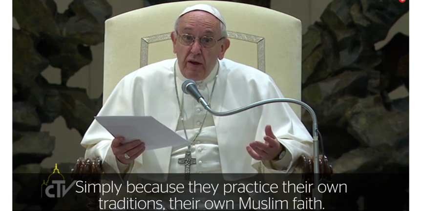 റോഹിങ്ക്യക്കാര്‍ ക്രൂരത നേരിടുന്നതിന് ഏക കാരണം അവരുടെ ഇസ് ലാം മതവിശ്വാസം : പോപ്